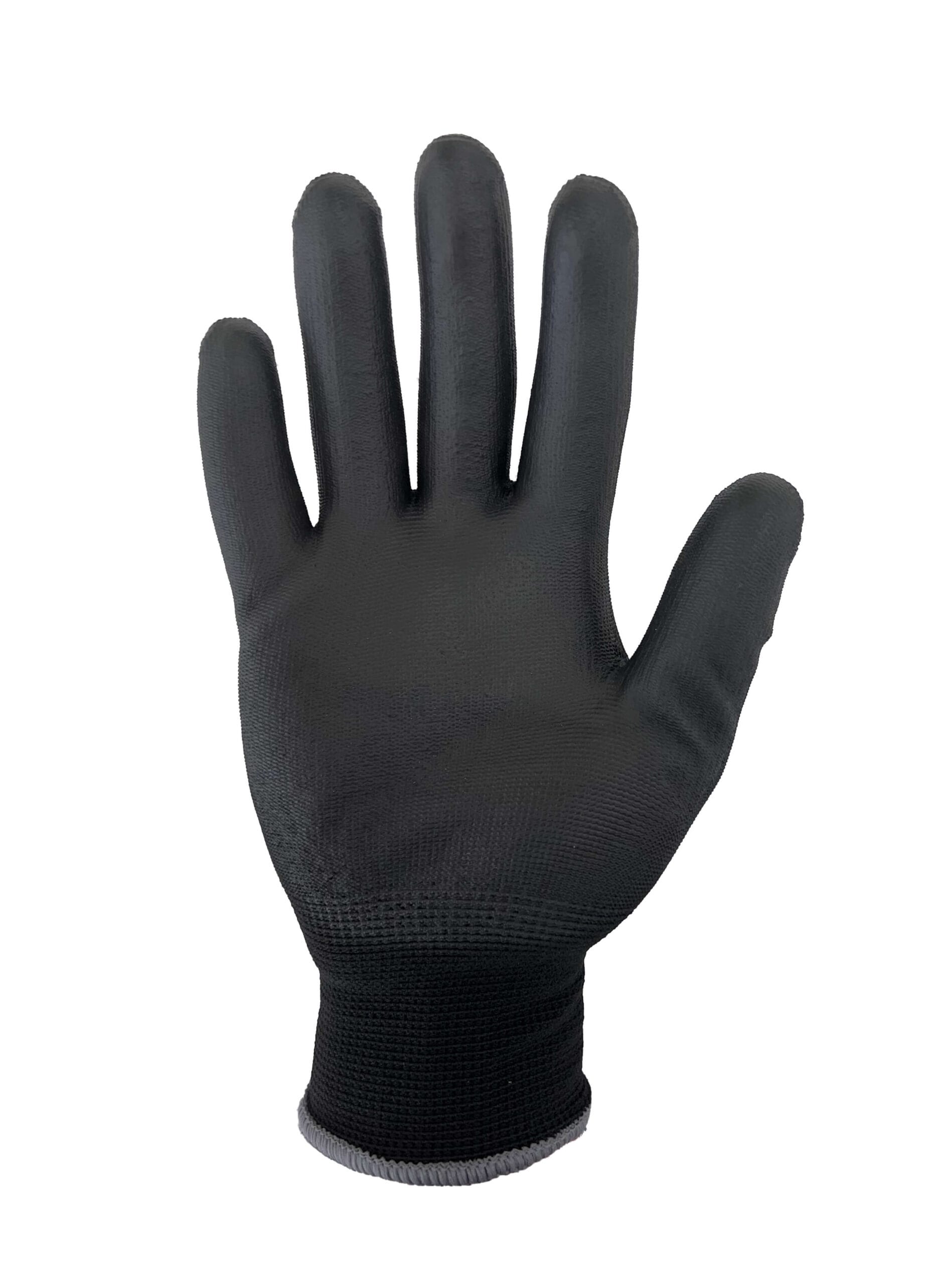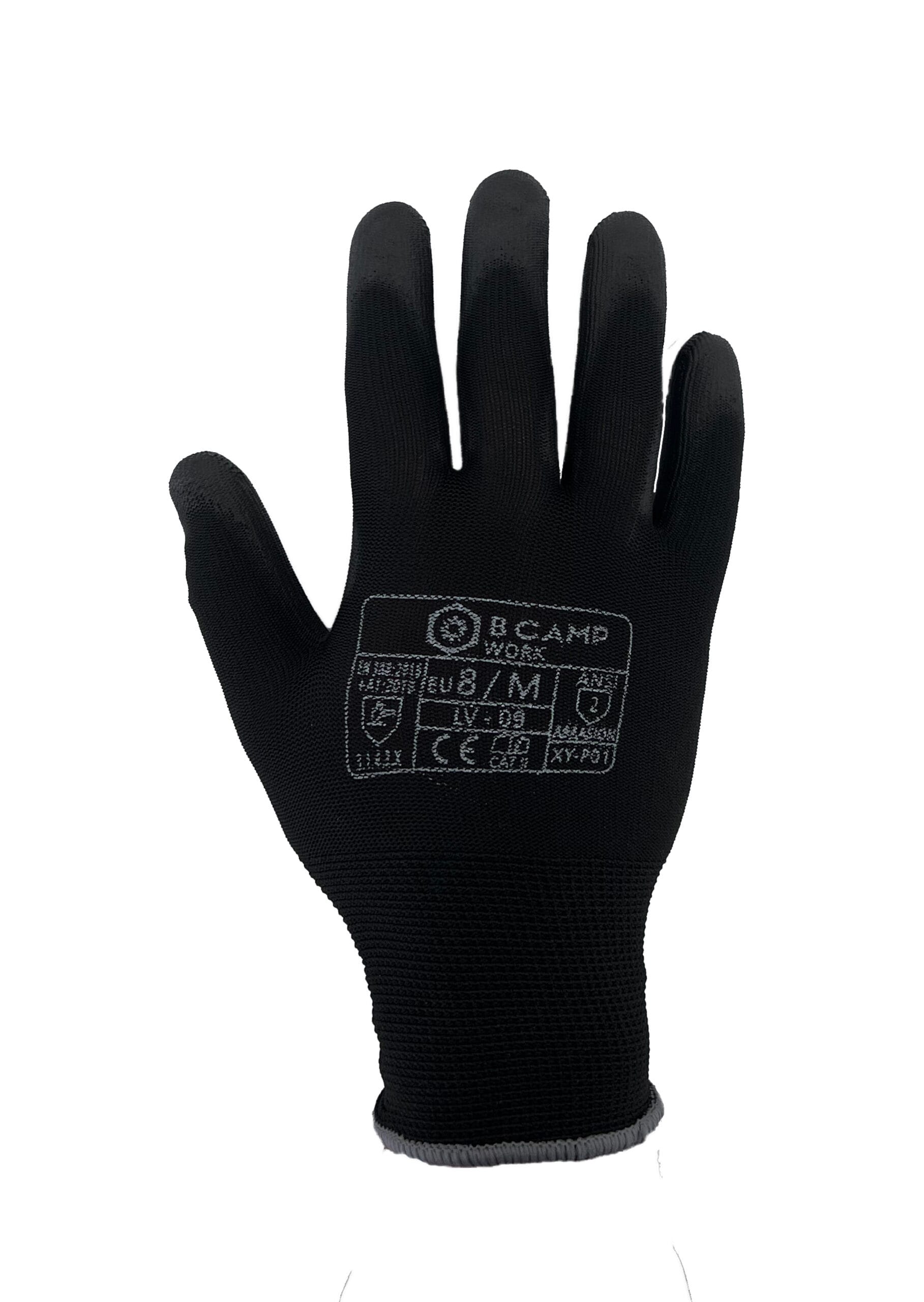 Luva em malha parcialmente revestida a poliuretano (PU).