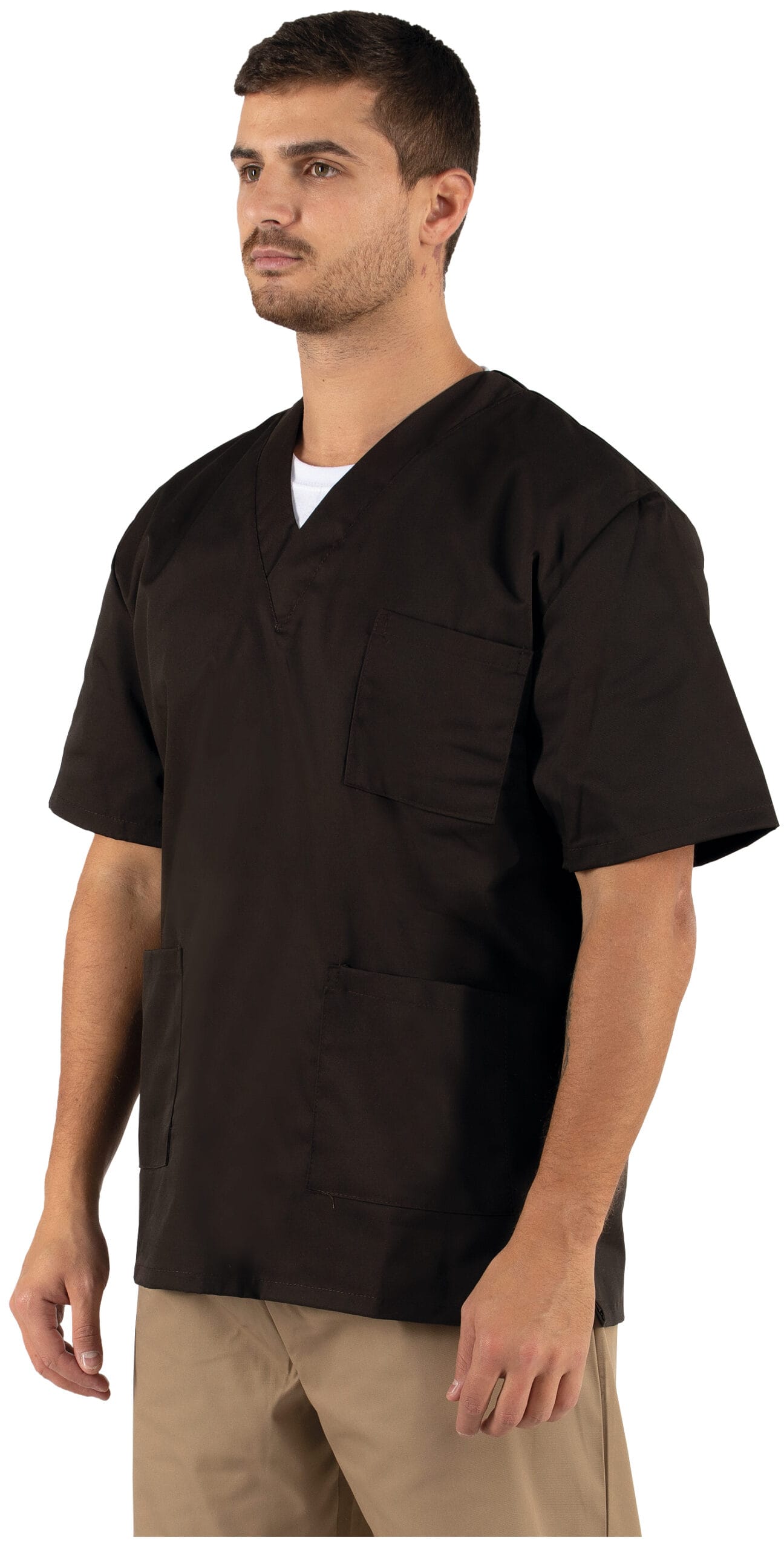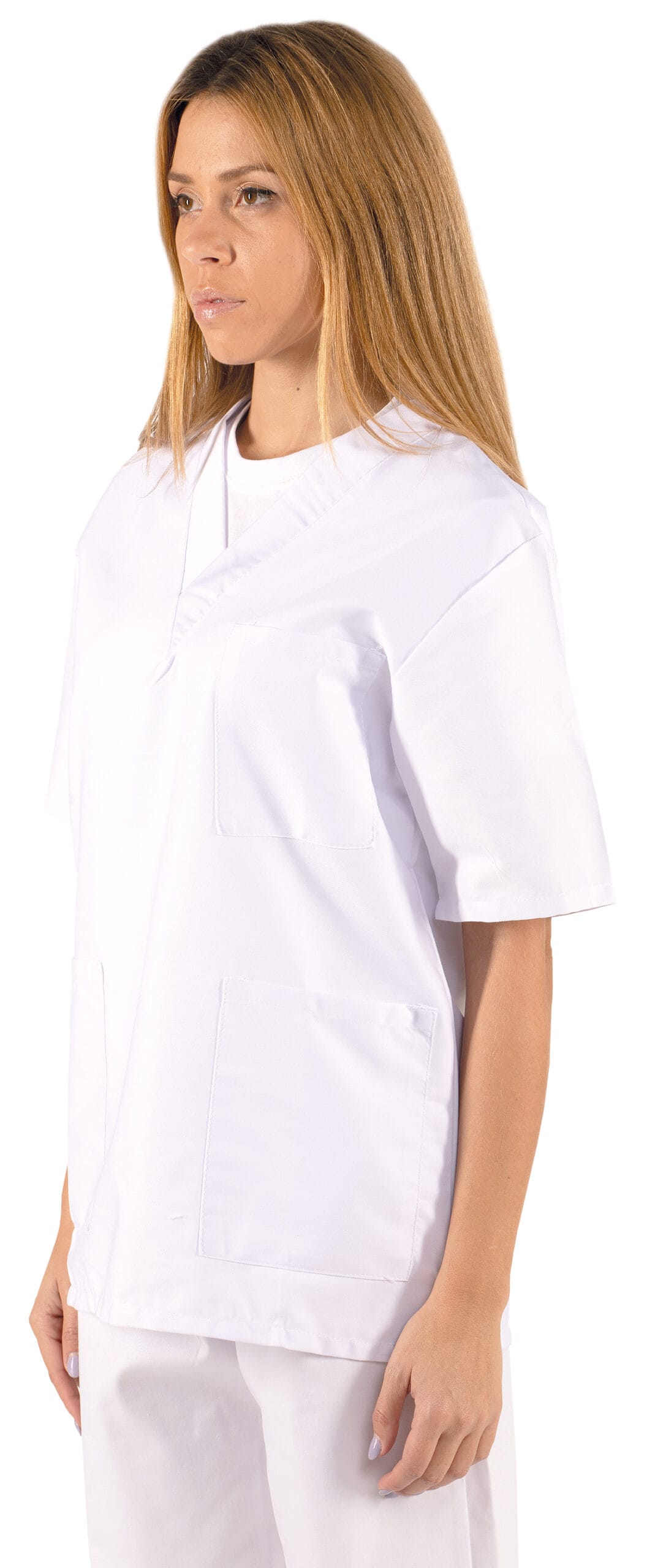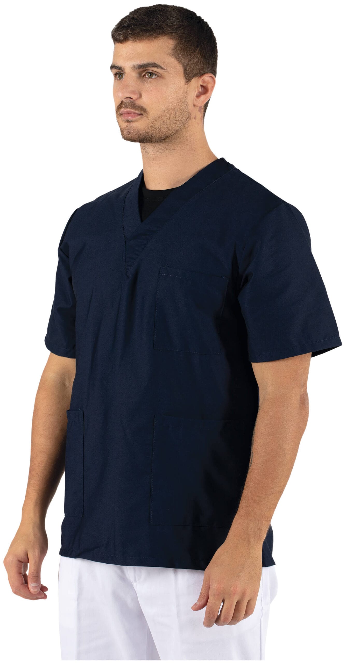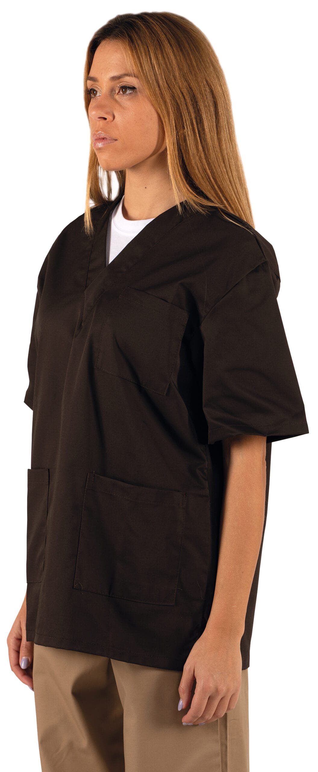 Túnica de decote em V em sarja.